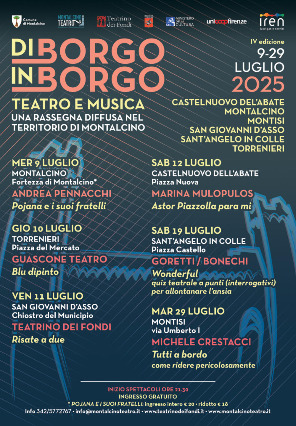 Dal 24 giugno al 29 luglio a Montalcino al via DI BORGO IN BORGO, Teatro e musica, una rassegna diffusa nel